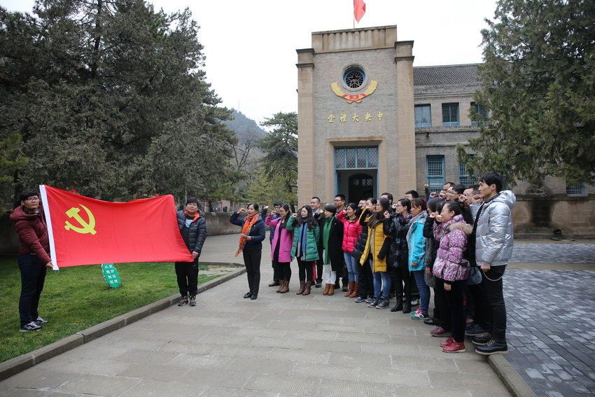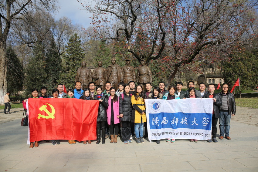 在杨家岭革命旧址,全体青年教师在中共七大会址前,举行了重温入党誓词仪式。庄严的中央大礼堂、鲜艳的党旗在苍松翠柏的掩映之下显得格外庄严,一群朝气蓬勃的青年人面向党旗又一次庄重地举起右手:“我志愿加入中国共产党,拥护党的纲领,遵守党的章程,履行党员义务,执行党的决定,严守党的纪律,保守党的秘密,对党忠诚,积极工作,为共产主义奋斗终身,随时准备为党和人民牺牲一切,永不叛党。 ”在参观毛泽东、周恩来、朱德等革命家的办公室与住所前,一位青年教师说,“在物质极度丰富、文化多元发展的今天,多少青年人按捺不住内心的躁动,被享乐主义、奢靡之风左右头脑而误入歧途,看到毛主席在如此简陋的办公环境下却写出了《中国革命和中国共产党》、《新民主主义论》等伟大论著,让人深思。在我们日常教学科研工作中,客观条件不是最重要的,关键在于主观能动性。陕西科技大学的教师发扬艰苦朴素的延安精神,用两台老虎钳办起五个工厂;在新校区建设发展的十年里,学校在异常困难的情况下,秉承‘勤俭办学、艰苦奋斗’的‘老轻院精神’,实现了学校在历史上最快速、最辉煌的跨越式发展,这一切都是对延安精神最好的坚持和传承。”
