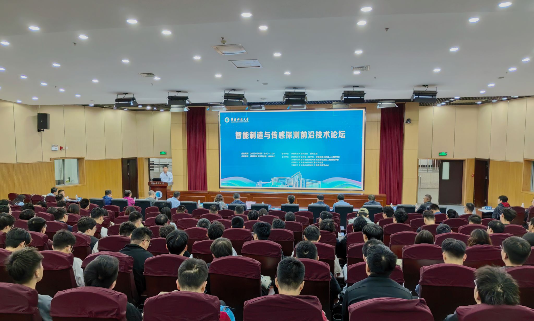 5月9日,由陕西科技大学机电工程学院(智能制造与机器人工程学院)、高端自动机械与智能微机电系统陕西省高校工程研究中心、中国轻工业装备制造智能化重点实验室,以及中国轻工业专用设备智能化工程技术研究中心联合主办的“展望 2035:智能制造与传感探测前沿技术论坛”在陕西科技大学圆满落幕。本次会议聚焦智能制造与传感探测前沿领域,汇聚学界与产业界智慧,吸引来自高校、科研院所、军工单位和行业领军企业的专家学者,以及师生代表等200余位齐聚一堂。