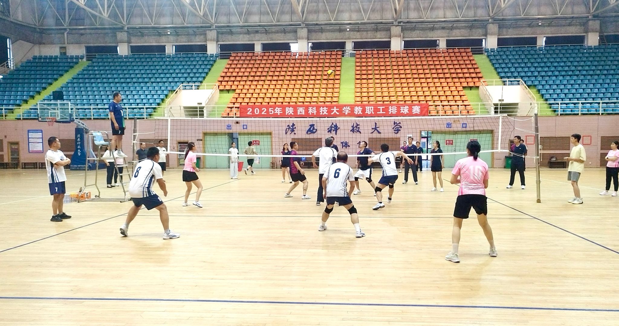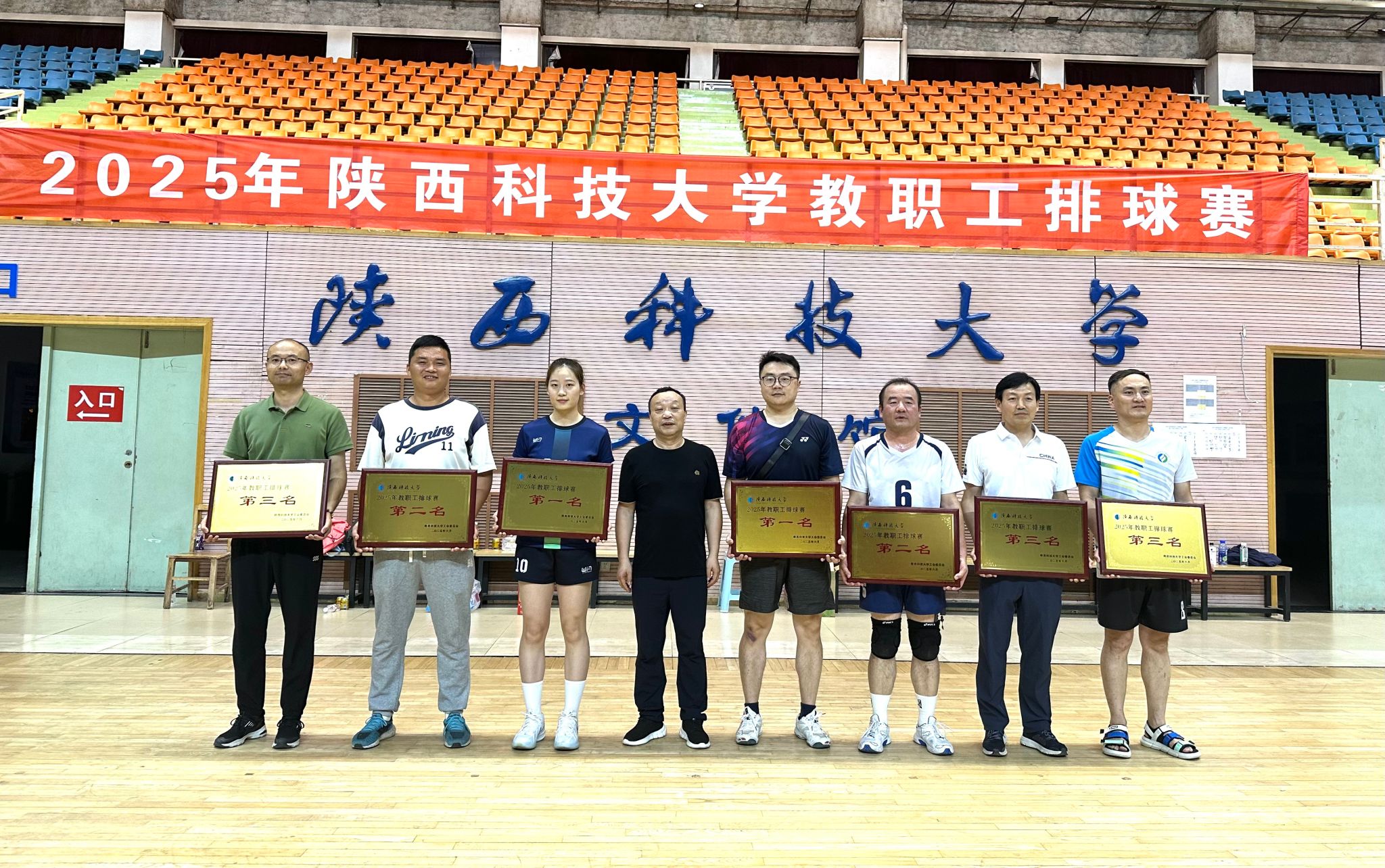 6月9日晚,为期十天的2025年陕西科技大学教职工排球赛在校文体馆圆满落下帷幕。最终,体育部分会和材料学院分会凭借稳定的发挥,默契的配合夺得冠军(同名次),附中分会、机关分会荣获二等奖,环境学院分会、食品学院分会、电智学院分会荣获三等奖, 机电学院分会和后勤集团分会获体育道德风尚奖。