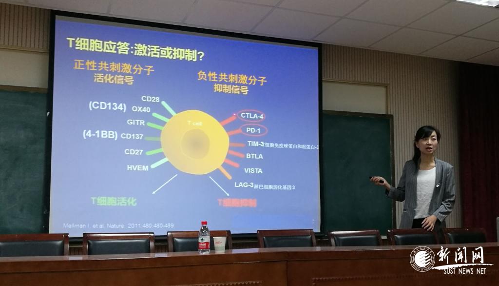 张典教授首先介绍人为什么会发生肿瘤,然后从传统疗法、靶向疗法到免疫疗法介绍了肿瘤治疗研究的三个进展过程,并对精准治疗的现状进行了分析,最后对人工智能治疗进行了展望。报告重点讲解了肿瘤抗体治疗、过继性细胞免疫治疗、肿瘤疫苗和溶瘤免疫治疗等免疫疗法的机理和当今的药物研发情况。拓展了文理学院生物数学团队及研究生对肿瘤防治相关知识及其研究进展的了解,提高了应用研究的能力。