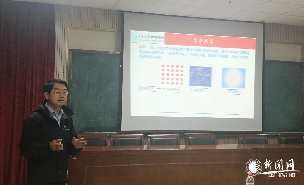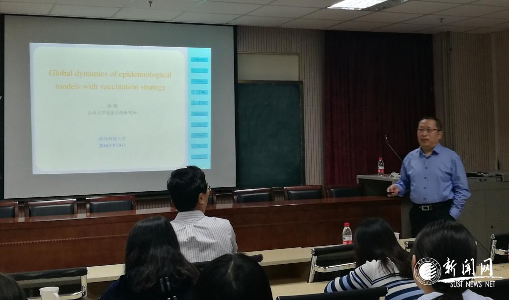 靳祯教授报告的题目是《网络传染病模型的分支分析》。报告首先介绍了复杂网络国内外研究现状,然后就复杂网络在我国传染病传播应用研究中取得的成果进行了综述,并从研究内容方面比较了基于复杂网络的传染病模型和传统的动力学模型之间的差异,通俗易懂地介绍了复杂网络传染病模型的研究方法,最后以具体模型详细介绍了一类自适应网络上传播的传染病模型研究情况。从理论分析和数值研究方面,讲解了三维系统的向后分支、Hopf分支、鞍结点分支和B-T分支的应用情况,并对所取得研究结果的实际意义进行解释。