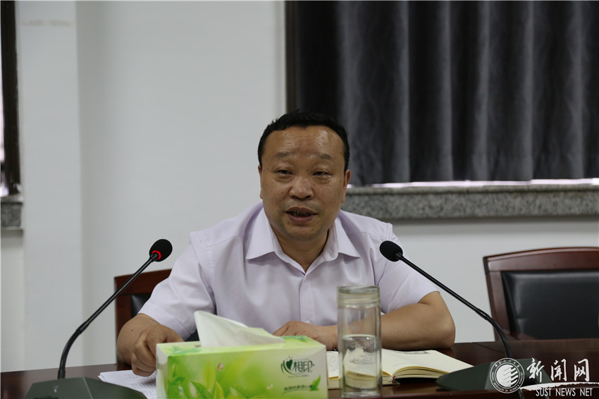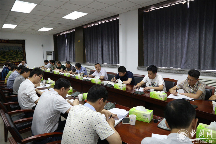 党办校办副主任王松峰传达了省委高教工委稳定安全工作相关通知精神及学校60周年校庆突发事件应急预案的有关内容。保卫处副处长(主持工作)安毅传达了陕西科技大学2018年“安全生产月”和“安全生产万里行”活动实施方案。