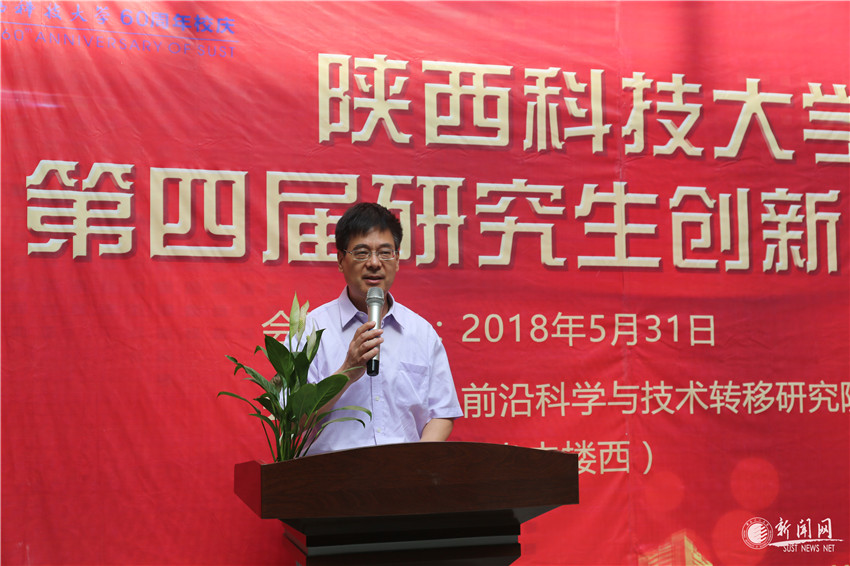 王学川强调了从国家层面到陕西省层面对研究生创新竞赛的重视,分享了我校学子在创新的道路上历年来取得的各项成绩,同时,也向积极参加本届成果展的全体学子致以良好的祝愿。