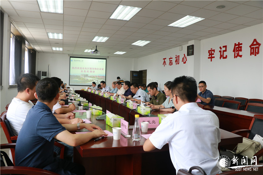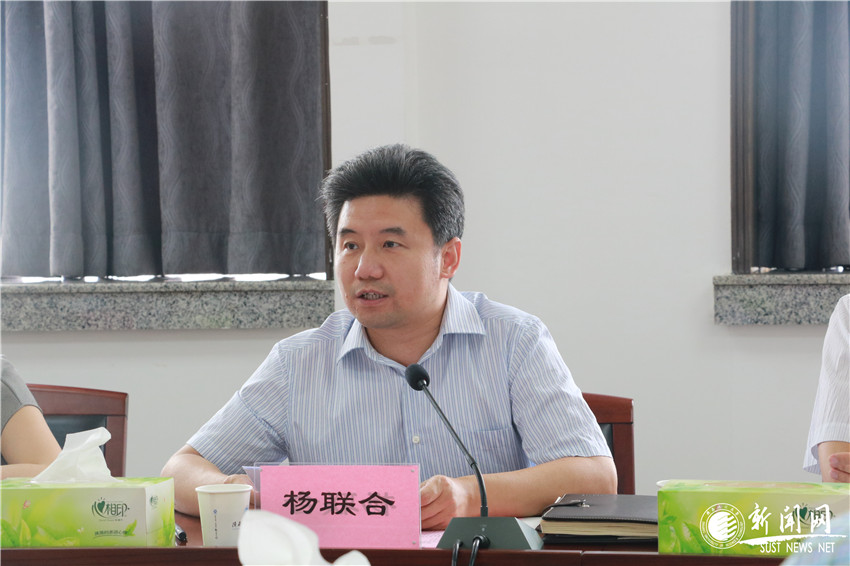 李志健首先对杨联合一行来校调研表示欢迎。李志健介绍了学校“三创两迁”的创业历程及学校的整体发展规划,结合实际介绍了学校顺应时代发展,紧密结合社会需求,进行学科发展,提升专业内涵,使传统专业焕发出了新的生命力和活力。同时,李志健代表学校对未央区委、区政府对陕西科技大学给予的支持和帮助表示感谢。