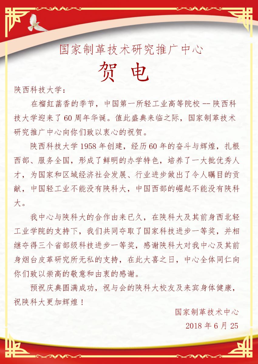 【甲子校庆】国家制革技术研究推广中心贺电