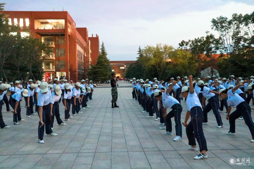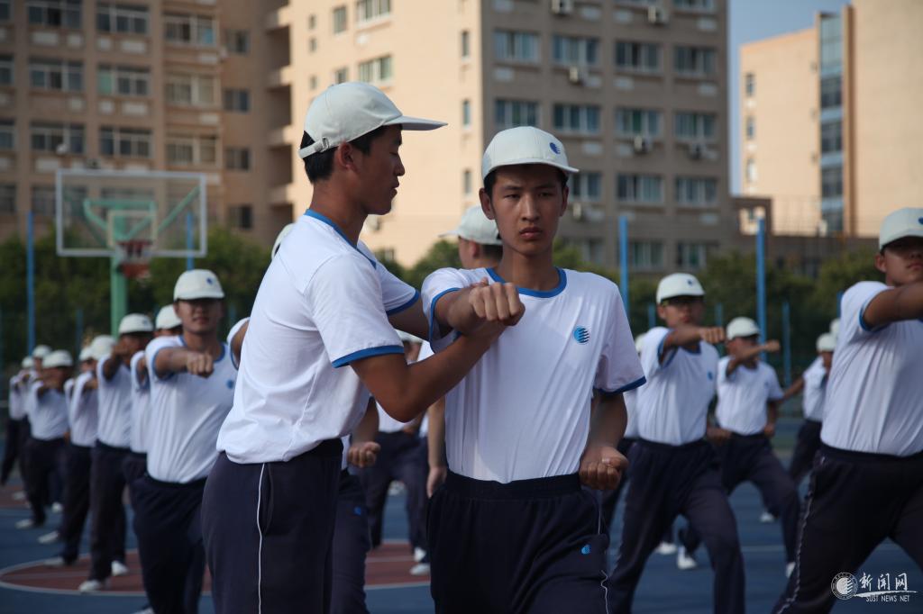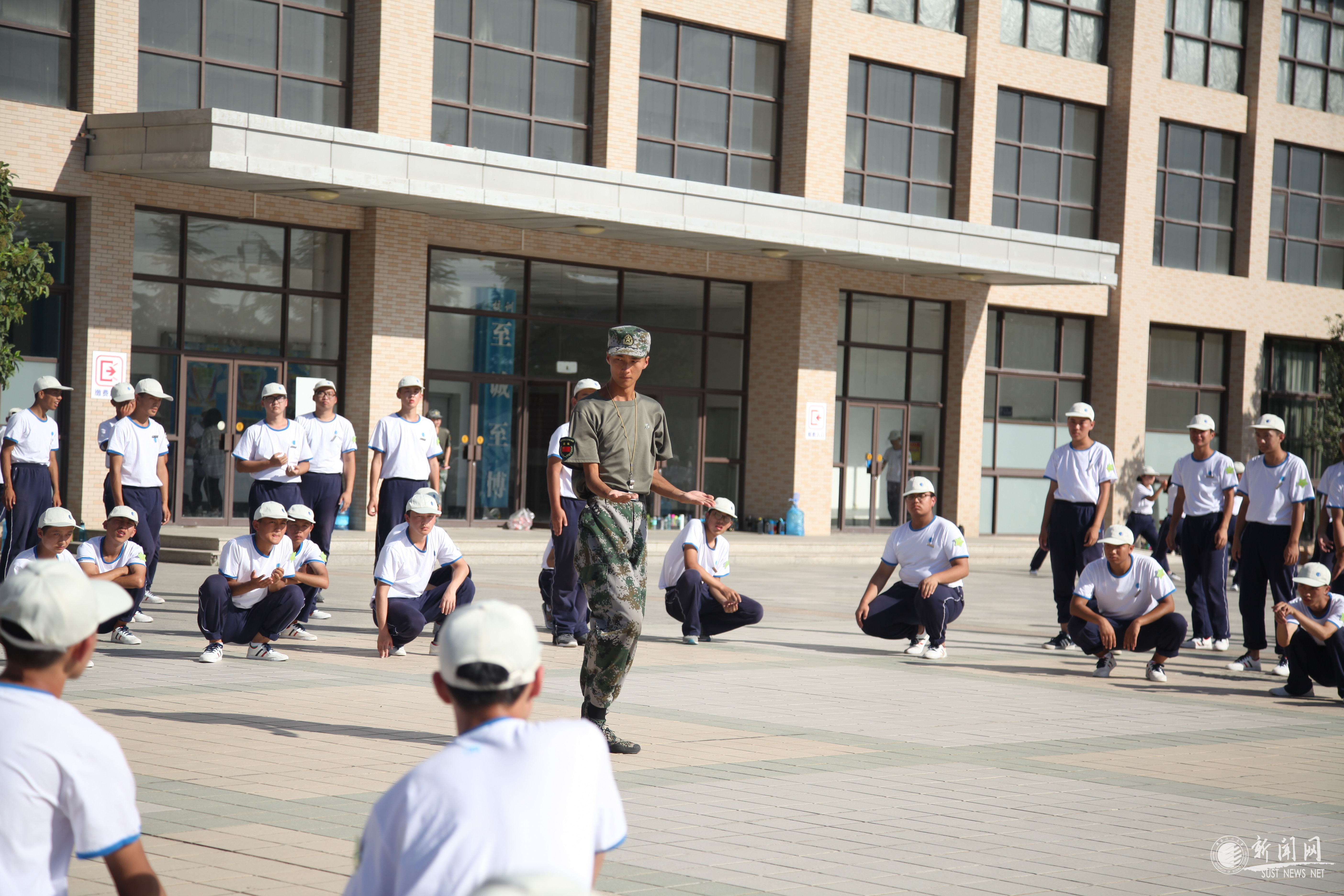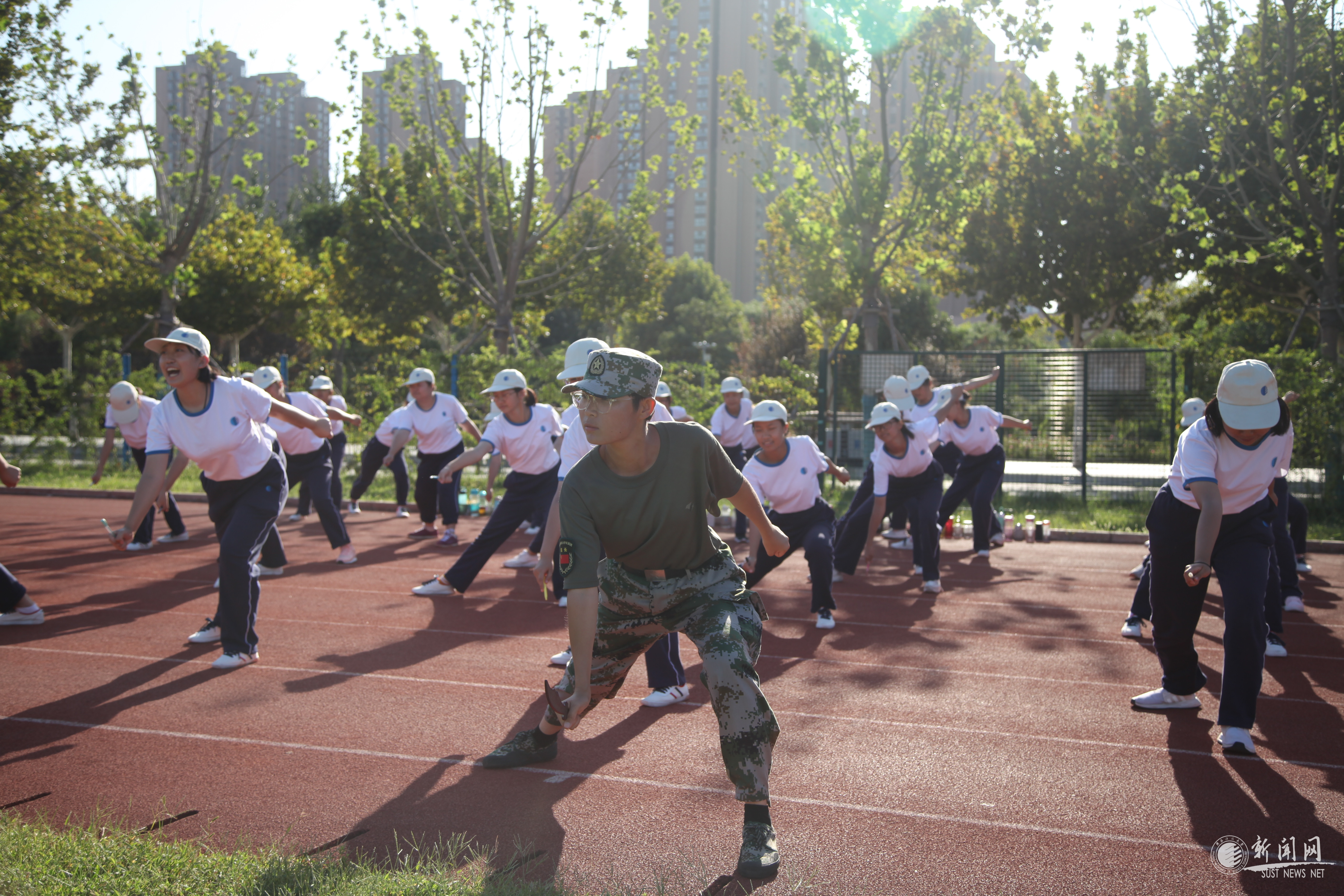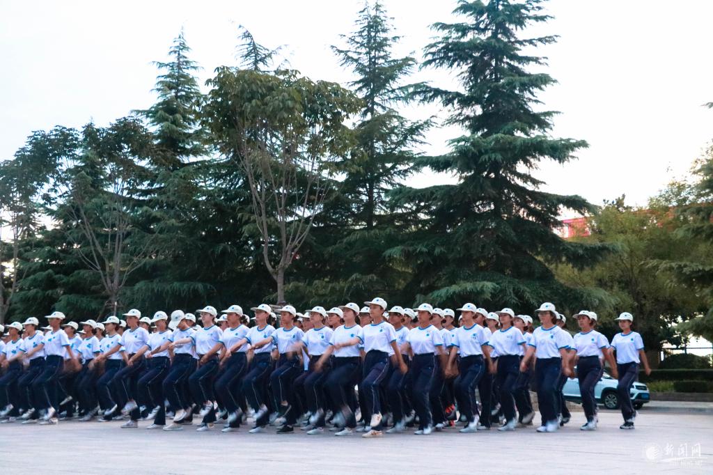 9月9日,星期日,晴。即使汗如雨下,大家也毫不懈怠,五营教官恪尽职守,努力追求动作一致,同学们认真观察。休息之余,教官的倾心交流也将会成为同学们最美好的回忆。