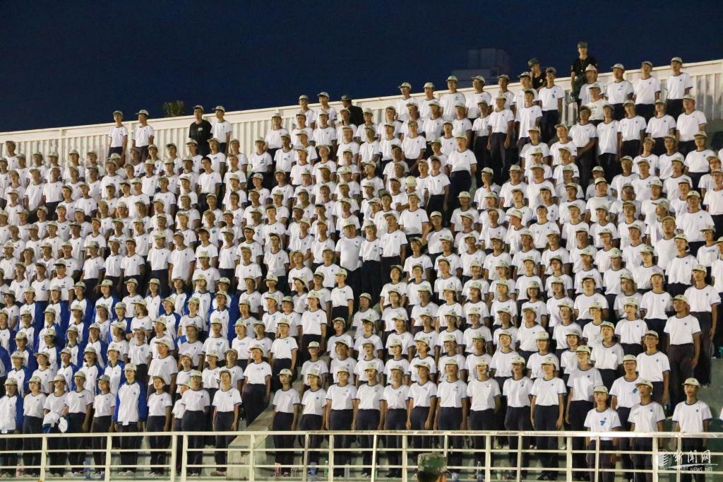 夜幕下,伴着柔和的灯光,七营学员们操练着军姿,他们昂首挺胸,以饱满的状态为今天的训练画上句号。
