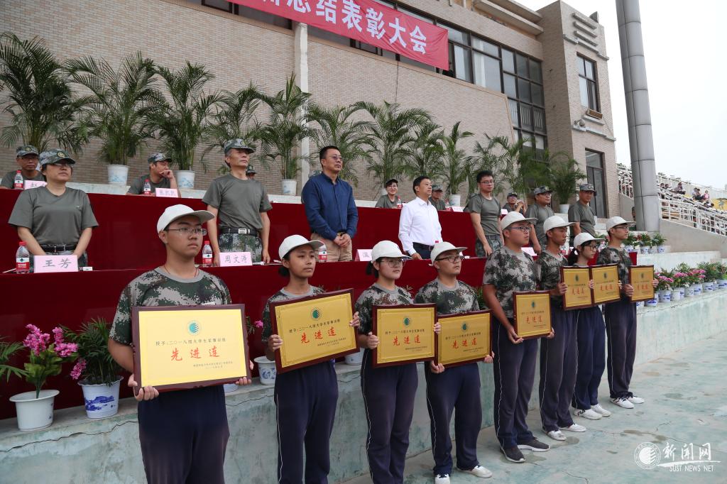 与会领导为受表彰的先进集体和个人颁奖,二营、六营、七营、八营荣获先进营荣誉称号;一营五连等30个连队荣获先进连荣誉称号;机电工程学院王正宏等30人荣获优秀指导员荣誉称号;胡媛等30人荣获优秀教官荣誉称号;轻工科学与工程学院田润达等370名同学荣获优秀学员荣誉称号。