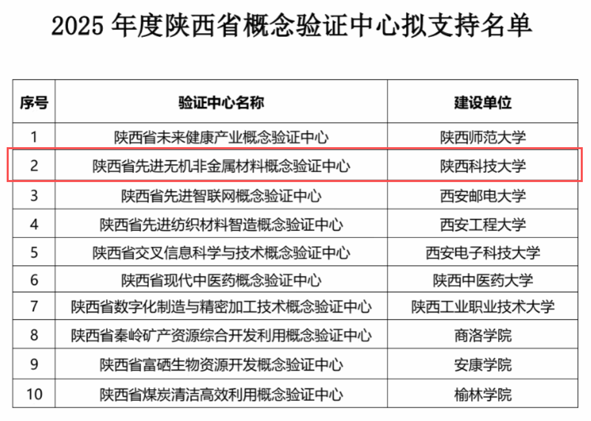 近日,陕西省科学技术厅公布了新一轮省级概念验证中心名单,陕西科技大学申报的“陕西省先进无机非金属材料概念验证中心”成功获批。这标志着我校在科技成果转化和创新平台建设方面迈出了重要一步,为服务区域科技创新与产业升级提供了新的支撑。