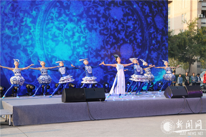 在随后举行的“红色旅游 五彩铜川”走进陕西科技大学专场宣传活动中,铜川市旅游发展委员会工作人员对铜川市各地特色旅游项目进行了推介,现场发放铜川市旅游宣传资料,展示铜川特色旅游纪念品并作为活动奖品赠送给了现场观众。来自铜川市各界的演出人员和我校学生表演了舞蹈《青花牡丹》、歌曲《铜川谣》、快板《习近平总书记到咱照金》等精彩的文艺节目。
