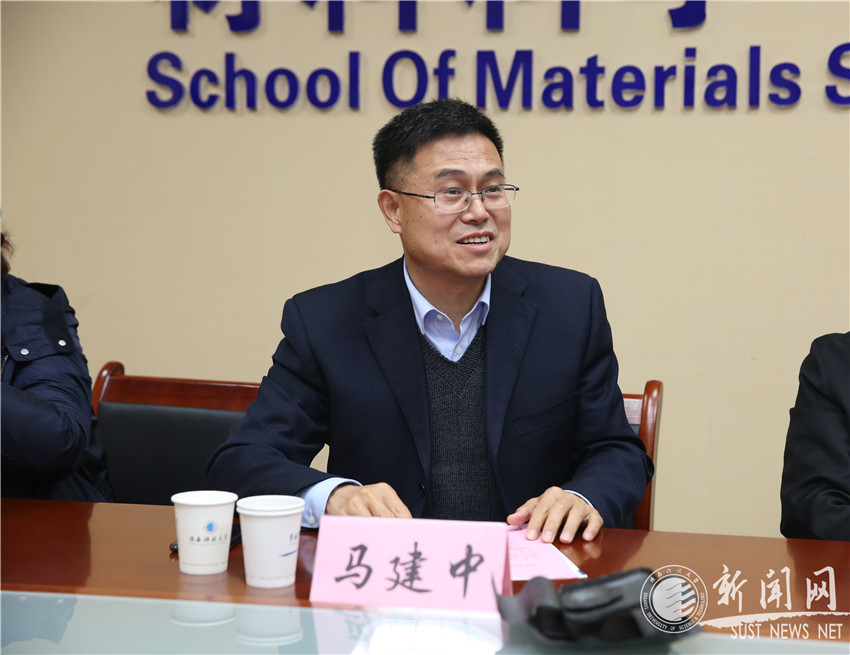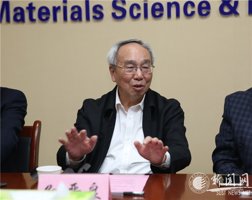 王学川简单介绍了学校的基本情况。材料学院院长朱建锋从学科、科研、人才培养等方面向孙院士一行汇报了材料学院近年来的发展情况,希望孙院士能多来学院进行交流指导,关心和支持我校材料学科的建设发展及人才培养。罗宏杰表示,作为陕西科技大学的校友,一直惦记着母校的发展,特别是为学校近两年来在人才引进、科学研究等方面的发展和变化而感到高兴。作为一所西部高校,学校和老师们为学校的发展付出了更多的努力,他也希望学校能有更好、更快的发展。