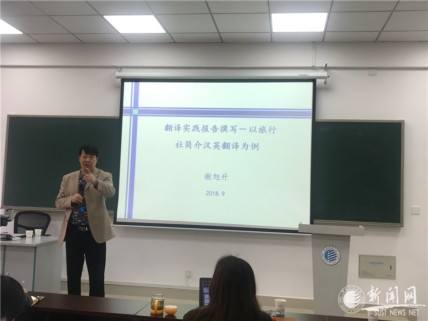 10月22日、23日,全国翻译专业学位研究生教育指导委员会学术委员会委员、中国英汉语比较研究会理事、新疆大学外国语学院谢旭升教授应邀作客我校“未央导师论坛”, 在文理学院MTI教育中心报告厅进行了四场学术讲座。系列讲座由文理学院副院长李稳敏主持,文理学院外语系部分教师、翻译专业全体硕士生参加了讲座。
