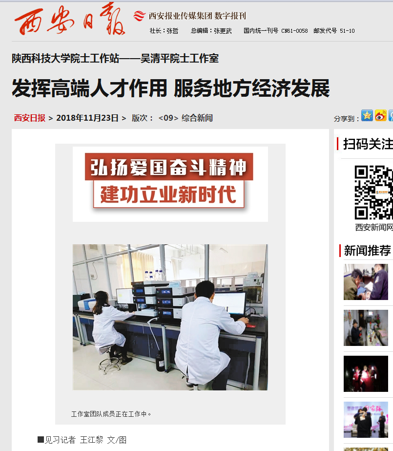 11月23日,西安日报以《发挥高端人才作用 服务地方经济发展》为题,报道了我校吴清平院士工作站取得突出科研成果的事迹,全文转载如下: