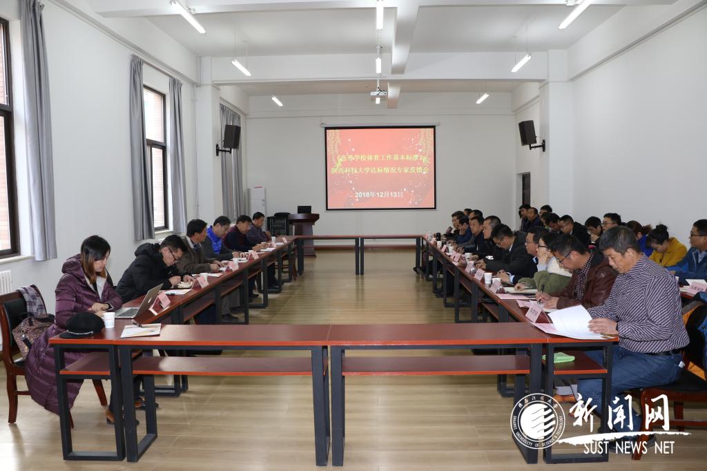 12月13日上午,“陕西高等学校体育工作基本标准”专项评估专家组一行6人,莅临我校就“体育工作基本标准”达标情况进行专项评估。专家组由陕西师范大学史兵教授任组长,西安思源学院许万林教授任副组长、西安工业大学谷崎教授、西安工程大学薛海红教授、西北大学张旭教授任组员,陕西师范大学杨小帆副教授任专家组秘书。专项评估现场考查专家见面会在逸夫楼506会议室召开。副校长黄剑锋出席会议,体育部、教务处、学生处、团委、国资处、财务处、人事处、各二级学院学生工作负责人参加了会议。