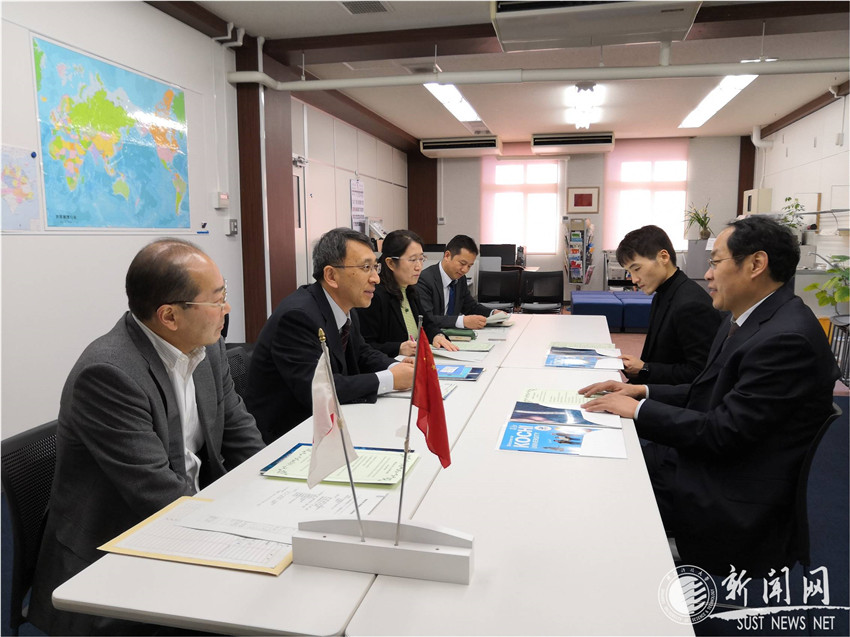 1月7日,代表团一行首先与远藤隆俊教授、国际联合培养部长林翠芳教授以及理工学部柳泽和道教授、张浩副教授等进行了座谈。双方重点就拓展本科生联合培养范围和方式等进行了商讨,并就进一步加强两校友谊与文化交流取得共识,为未来五年新一轮合作育人和国际交流奠定了基础。会后双方互赠了礼物。
