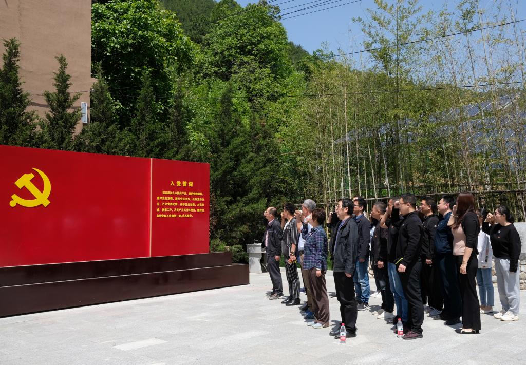 留仙坪是1935年红二十五军创建鄂豫陕革命根据地时中共豫陕特委活动区域之一,在抗日战争和解放战争时期是中共商洛工委和陕南游击队活动的重点地区。党员同志们首先到达砖庙沟口会师广场,聆听了李先念率领的中原军区北路突围部队在创建豫鄂陕革命根据地的斗争中和巩德芳率领的陕南游击队胜利会师的革命历史,全体党员在会师广场面对党旗,重温入党誓词,追忆入党初心,表达为党的事业奋斗终身的决心。