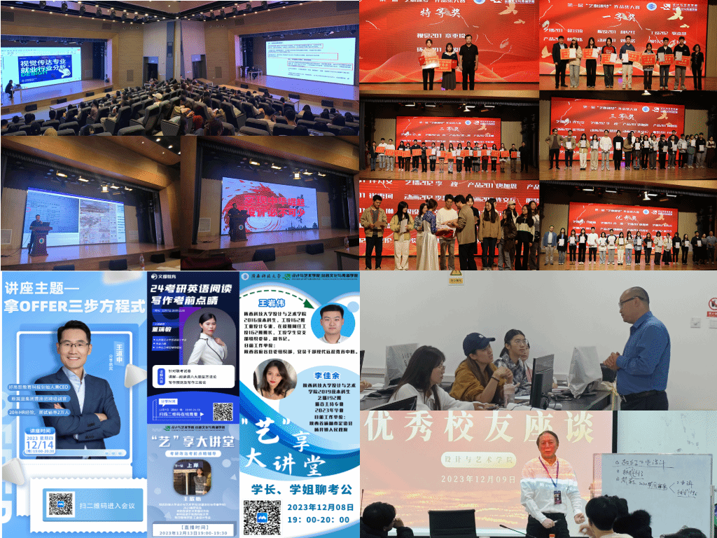 在就业能力上出实招,提升服务指导链。围绕学生考研升学、职业生涯规划、就业求职指导,邀请企业美果设计总监、优秀校友张建民、溯洄企业领导、上海震旦企业HR、文都教育、新东方等开展就业升学能力提升系列专题讲座。邀请考公、考研上岸的优秀毕业生对学生进行考公报考、复习技巧、手绘沙龙、考研考前点睛指导等分享交流。开展学院首届“艺心逐梦”优秀作品集大赛等活动,做好就业升学准备工作。