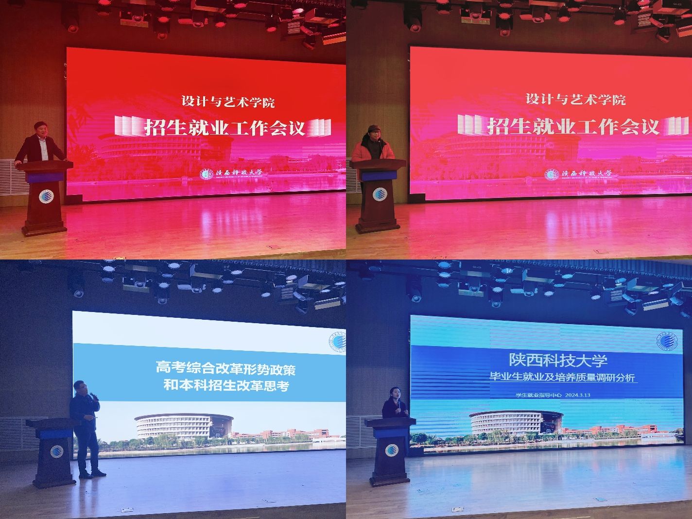 为深入推进学院学科专业一体化建设,以“招生-培养-就业”联动机制改革为契机,全面提高人才培养质量,着力提升毕业生就业竞争力,3月13日,设计与艺术学院(丝路文化与传播学院)召开招生就业工作会议,邀请招生工作办公室副主任王宁、学生就业指导中心副主任田少宁作分享报告,全院教职工参加会议。会议由学院院长刘宗明主持。