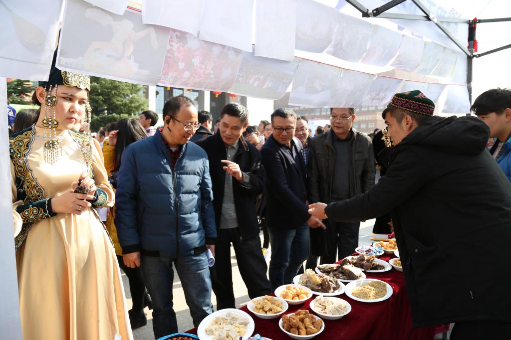 11月25日,由陕西科技大学学工部、陕西科技大学团委主办,管理学院承办的首届民族文化展在沁园广场举行。校党委副书记温锋、学工部、校团委、管理学院相关负责人出席活动并与同学们互动联欢。