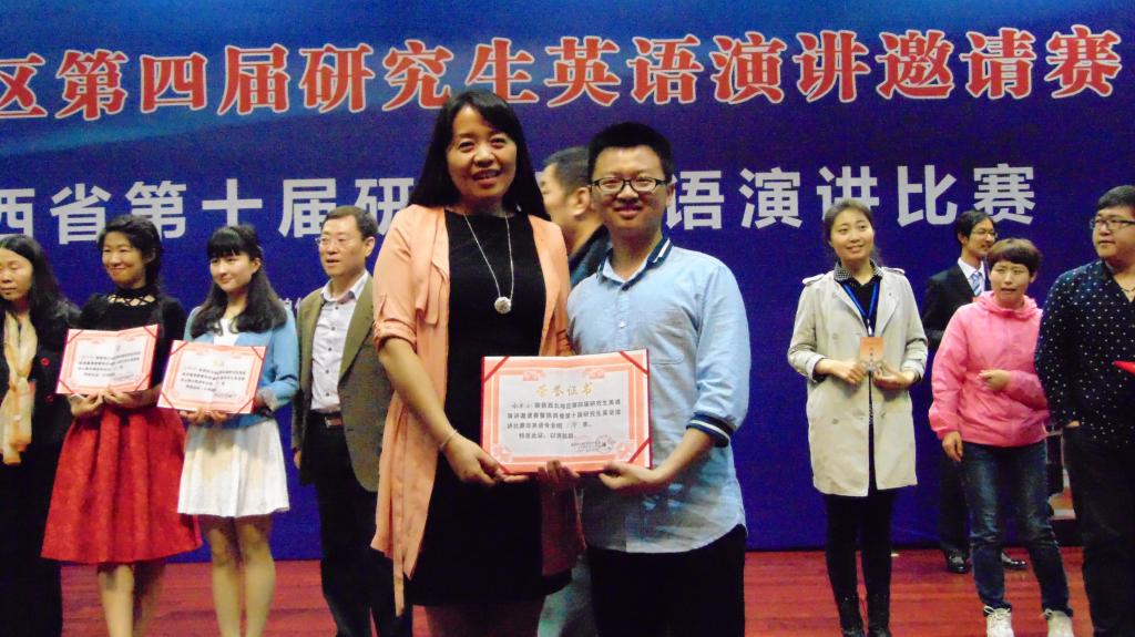本届获奖是继2009年07级研究生黄龙云在西北地区(非英语专业)研究生英语演讲邀请赛暨陕西省第七届(非英语专业)研究生英语演讲比赛夺得三等奖之后,我校再次在此项赛事活动中取得好成绩。