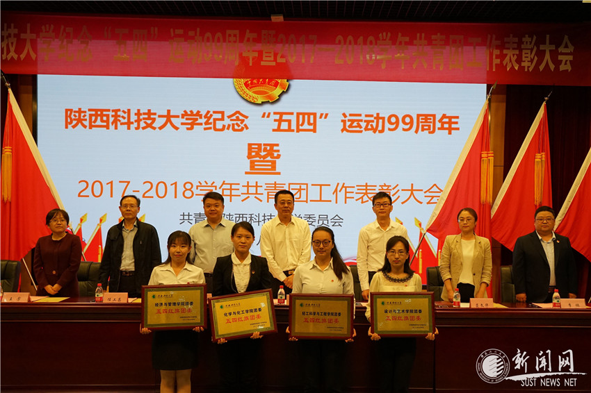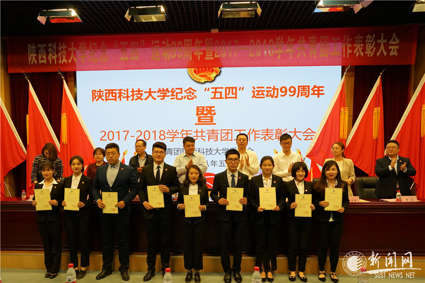 5月4日上午10时,陕西科技大学2017-2018学年共青团工作表彰大会在图书馆学术报告厅举行,隆重纪念五四运动99周年,表彰2017—2018学年共青团工作先进集体和个人。校党委副书记温锋出席大会并为获奖集体和个人代表颁奖。大会由校团委副书记余鸣主持。