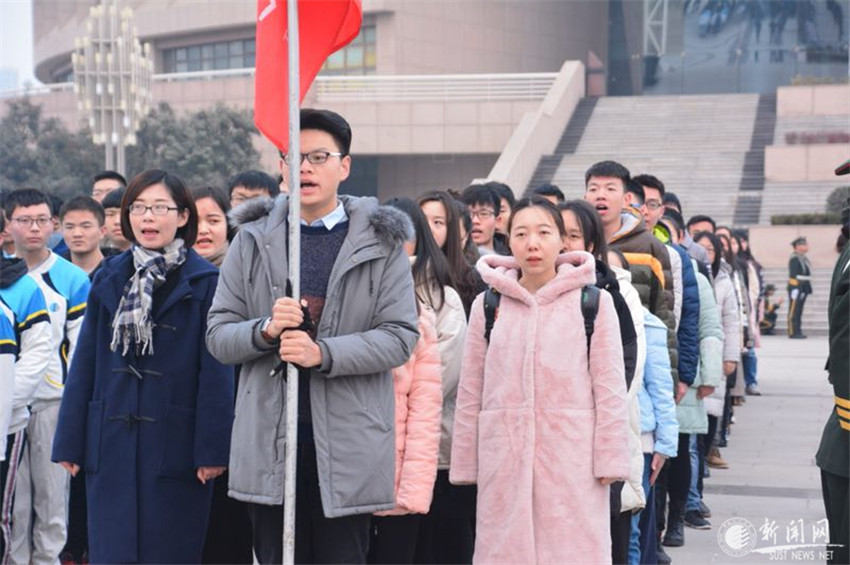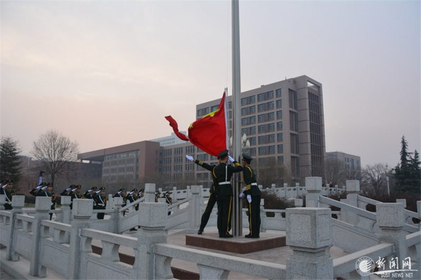 8时整,迎着新年的阳光,国旗护卫队队员步履铿锵、身姿矫健,护卫着国旗走向升旗台。在雄壮而嘹亮的国歌声中,师生列队向国旗行注目礼,一同高唱中华人民共和国国歌,目送国旗冉冉升起,迎风飘扬,共同祝愿伟大的祖国繁荣昌盛、蒸蒸日上,祝愿美丽的科大阔步前行、再创辉煌。