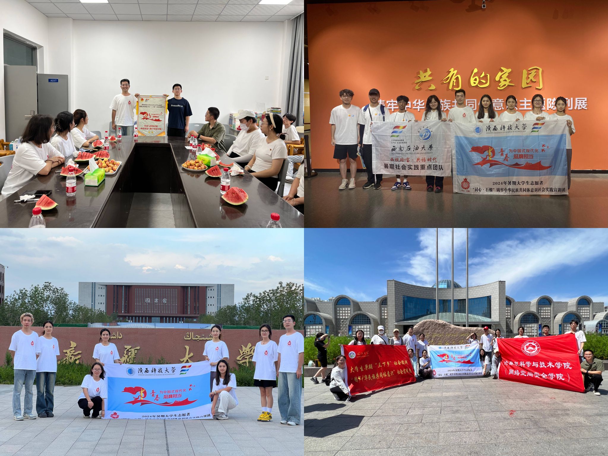 2024年6月,在校团委的指导下,我校经管学院“同心・石榴”实践团在“铸牢中华民族共同体意识——‘石榴籽 祖国行’”新疆专项社会实践活动正式立项。从陕西西安出发,奔赴新疆维吾尔自治区开展铸牢中华民族共同体意识宣讲活动,先后深入乌鲁木齐、阿克苏、库尔勒、阿勒泰、哈密等5大城市以及8个乡镇社区进行宣讲。同时,举办了15场民族文化体验活动,累计影响人数达3000余人次,动进一步推动了民族团结理念深入人心。