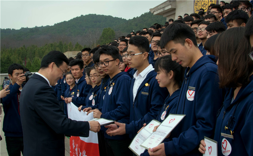 全国青联副主席李嵘、团省委书记段小龙等青年代表与我校志愿者合影