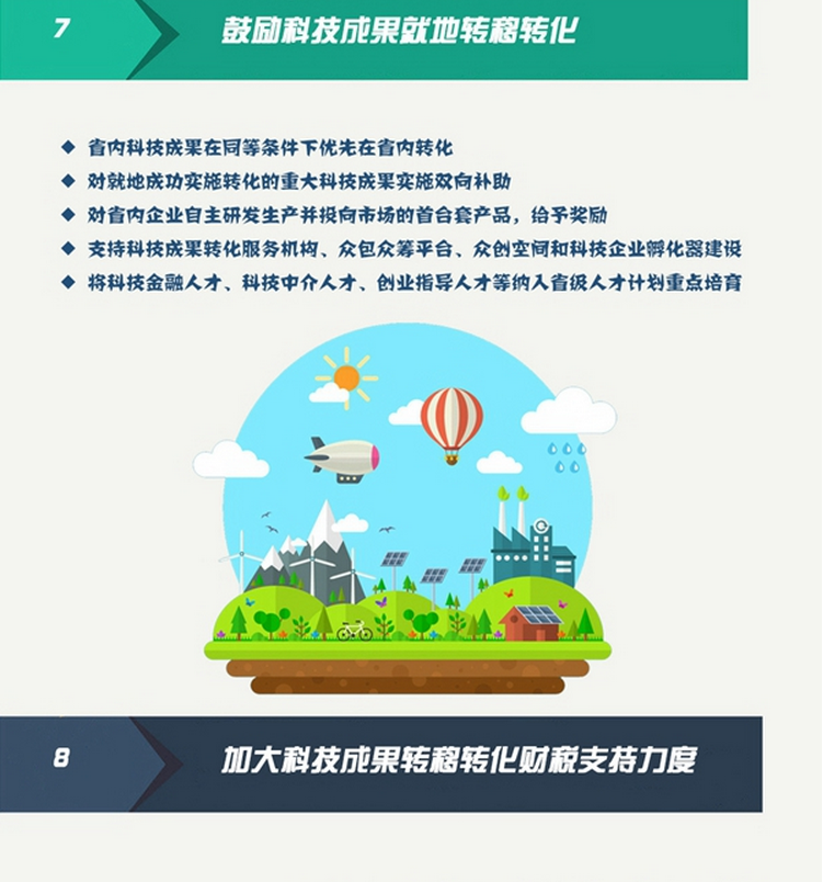 七、鼓励科技成果就地转移转化。省内科技成果在同等条件下优先在省内转化 。对就地成功实施转化的重大科技成果实施双向补助,根据产业化规模和纳税总额,给予成果供给方和吸纳方 总额合计30%、最高不超过150万元的后补助或贷款贴息。对省内企业自主研发生产并投向市场的首台套产品,按首台套产品销售价格的5%给予奖励,最高不超过50万元。支持科技成果转化服务机构、众包众筹平台、众创空间和科技企业孵化器建设,根据其业绩给予奖励和后补助。将科技金融人才、科技中介人才、创业指导人才等纳入省级人才计划重点培育。
