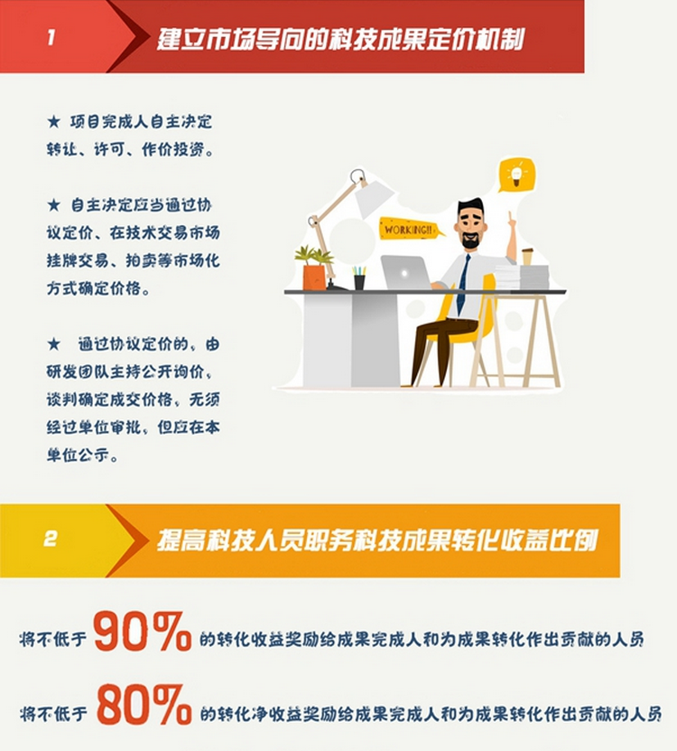 一、建立市场导向的科技成果定价机制。利用财政性资金资助形成的科技成果,除涉及国防、国家安全、国家利益和重大社会公共利益的,可以由高等院校、研发机构的项目完成人自主决定转让、许可、作价投资。自主决定转让、许可、作价投资应当通过协议定价、在技术交易市场挂牌交易、拍卖等市场化方式确定价格。通过协议定价的,由研发团队主持公开询价,谈判确定成交价格,无须经过单位审批,但应在本单位公示。