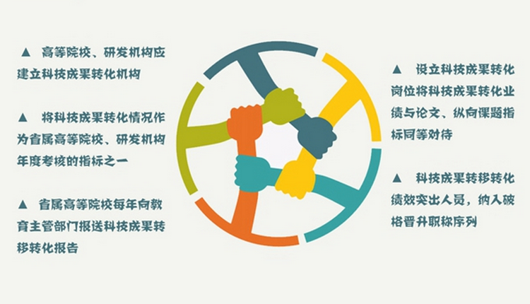 九、创新科技成果转移转化评价机制。高等院校、研发机构应建立科技成果转化机构,设立科技成果转化岗位。将科技成果转化业绩与论文、纵向课题指标同等对待,科技成果转移转化绩效突出人员,纳入破格晋升职称序列。将科技成果转化情况作为省属高等院校、研发机构年度考核的指标之一。省属高等院校每年向教育主管部门报送科技成果转移转化报告,由教育主管部门统一报省政府,作为增加高等院校拨款的重要依据。