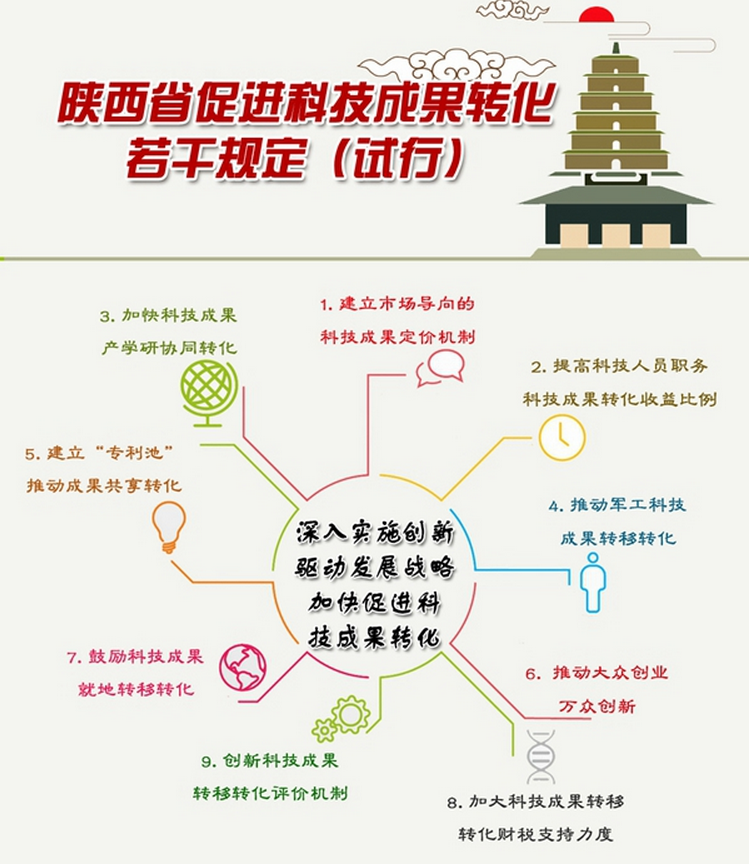 为认真贯彻习近平总书记系列重要讲话特别是来陕视察重要讲话精神,深入实施创新驱动发展战略,加快促进科技成果转化,依据《中华人民共和国促进科技成果转化法》、《国务院关于印发实施〈中华人民共和国促进科技成果转化法〉若干规定的通知》和《国务院办公厅关于印发促进科技成果转移转化行动方案的通知》,制定本规定。