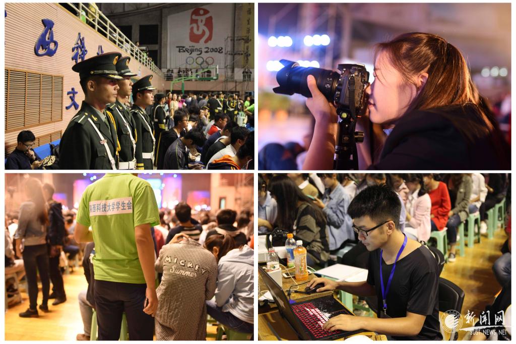 一套流光溢彩的礼服,灌注着设计者最真挚的情感和珍视。一场T台走秀,展现的不仅是服装的惊艳,还有走秀者们对衣服的最美诠释。早上出门时还对我微笑的宿管阿姨,如今已换上舞服,踩着最欢快的节拍,跳着最活泼的舞蹈。我似乎还能看到她们年轻时的风姿。俗话说“两个臭皮匠胜过一个诸葛亮”,那么两个自称超级神探的家伙凑在一起是不是就成了个赛诸葛呢?你绝对想不到,这世上还有人能探案探出这么些幺蛾子。一场黑与白的较量,一场力量与智慧的碰撞,谁输谁赢我不关心,舞得尽兴便好。徒手劈木板,回旋踢木板,哪怕面对的是再坚硬再晦涩的事物,只要有力量,没什么破不了的。相逢青稚,成熟在一步步的相识相知,感谢我的青春年月有你的陪伴。悄悄是别离的笙箫,此情此夜此别离,都是我青春的印记,不但不忘,更会时时相忆。光影迷离,音乐流转的现场,还有一群人。有些站得笔挺,全程不曾不变;有些奔波台前幕后,忙碌得连水都顾不上喝;还有些抱着沉重的机器,各种姿势各个角度,只为留下晚会最美丽的瞬间。他们就是现场的工作人员和各媒体的记者们,除了舞台上的表演者们,他们也是现场迷人的风景。 (核稿:崔楠 编辑:雷超 学生编辑:钟贞)