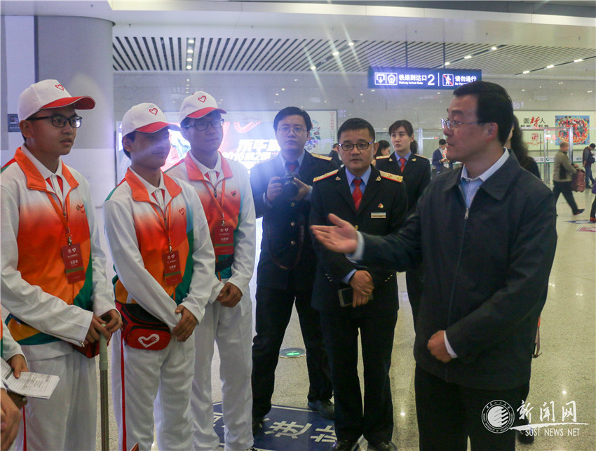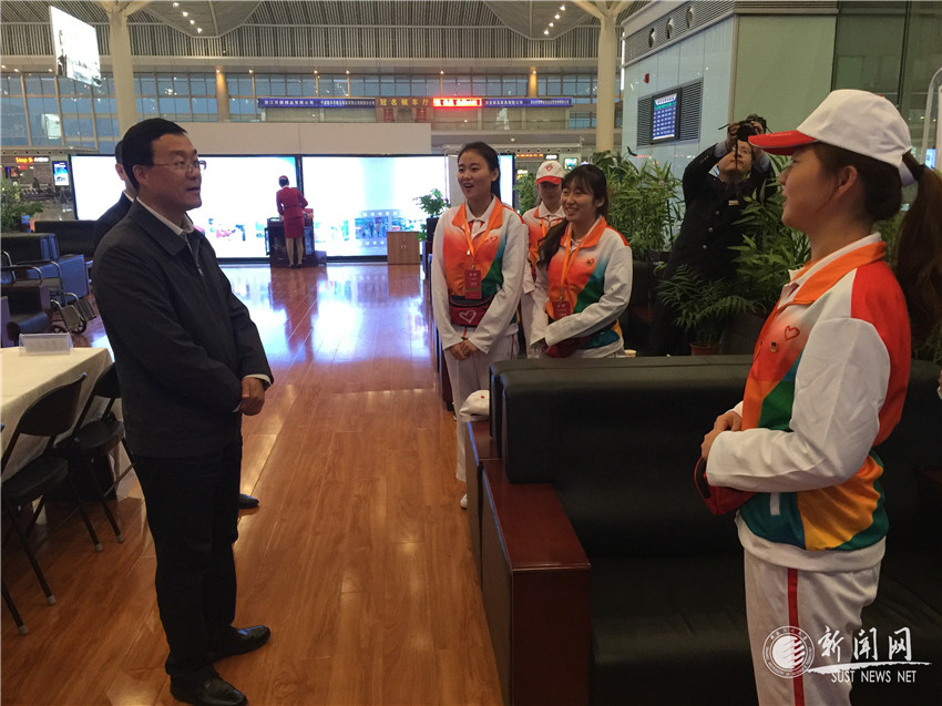 在第十一届中国艺术节即将开幕之际,共青团陕西省委书记、第十一届中国艺术节陕西省工作指挥部志愿者工作部部长段小龙,陕西广播电视台副台长、党委副书记安平,共青团陕西省委志愿者工作部副部长胡晓彤等一行于10月13日下午来到西安咸阳国际机场、西安北客站,慰问我校正在此地进行现场服务的127名大学生志愿者。