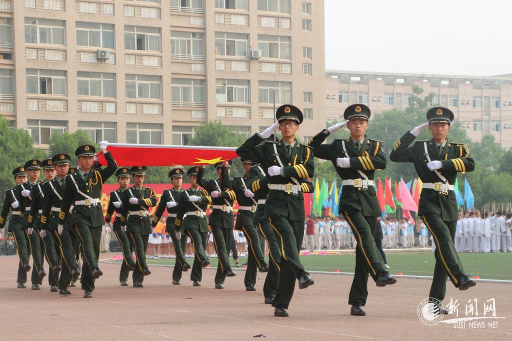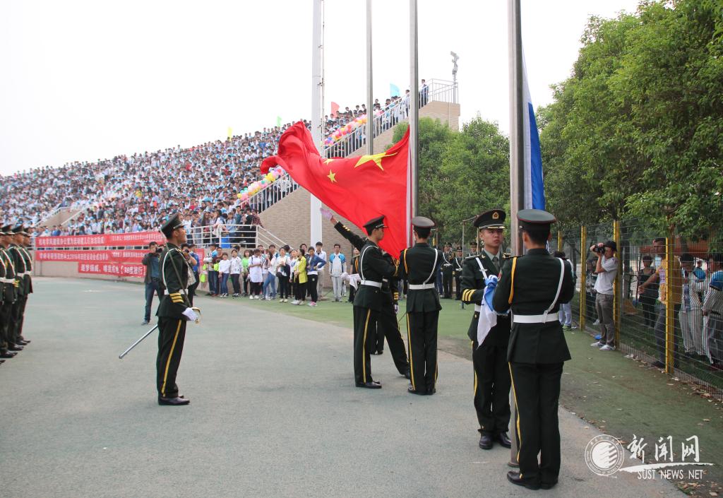 随后,与会师生全体起立,举行了庄严的升国旗、校旗和运动会会旗仪式。