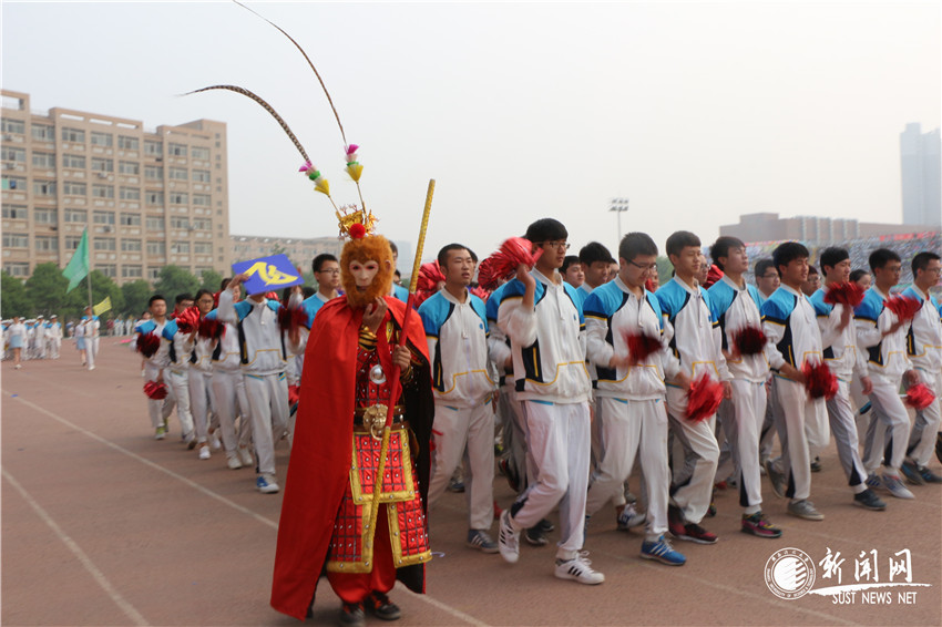 开幕式简朴而热烈。在“创新、开放、共享,学科、人才、质量”六大办学理念大幅标语牌的引领下,运动员、裁判员、志愿者、竞技类体育社团等代表队精神抖擞、意气风发地依次经过主席台前。他们各具特色、个性鲜明,经济与管理学院代表队中的少数民族代表,展现了民族团结融合的风貌;环境科学与工程学院代表队请来了象征威武勇敢的“孙大圣”;体育竞技社团代表队的自行车队、轮滑队更是活力飞扬,充分展现了我校师生团结奋进、昂扬向上的精神面貌。