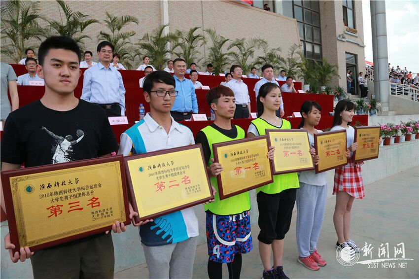 陈援表示,两天的比赛中,运动健儿们奋勇争先、顽强拼搏,裁判员和工作人员尽职尽责、精致服务,广大师生热情参与、积极配合,充分展现了我校师生蓬勃向上的良好精神风貌。希望大家能够将运动会上激发出的团结意识和拼搏精神融入到日常的学习、工作和生活中,为学校发展做出新的贡献。校党委副书记杨欲晓为获奖单位颁奖副校长王学川为获奖单位颁奖总裁判长庄希琛老师宣布比赛成绩和体育道德风尚奖评选结果 总裁判长庄希琛老师宣布比赛成绩和体育道德风尚奖评选结果。教工团体获前三名的分别为文理学院分会、电气与信息工程学院和机关分会;大学生团体总分方面,镐京学院以总分313的优秀成绩蝉联第一,机电工程学院以总分271的成绩位居第二,经济与管理学院则以259分的成绩位居第三;大学生女子团体获前三名的分别为镐京学院、经济与管理学院、材料科学与工程学院;大学生男子团体获前三名的分别为镐京学院、机电工程学院、化学与化工学院。设计与艺术学院分会、轻工科学与工程学院分会荣获教职工体育道德风尚奖,材料科学与工程学院、化学与化工学院荣获大学生体育道德风尚奖。与会领导为获奖单位颁了奖。在2239名运动员及观众的欢呼呐喊和热烈掌声中,本届运动会圆满闭幕。 运动会后,还评出了第九套广播体操比赛成绩,材料科学与工程学院荣获第一名,轻工科学与工程学院、电气与信息工程学院并列第二名,经济与管理学院、文理学院和职业教育师范学院并列第三名,设计与艺术学院、食品与生物工程学院、环境科学与工程学院荣获优秀组织奖,化学与化工学院、机电工程学院荣获体育道德风尚奖。