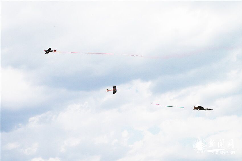 闭幕式上,航模协会带来的数十架航模飞机直冲碧空,出其不意、变化多样的航模表演展现了我校“创新、开放、共享”的精神和追求。随后举行了11个学院参加的第九套广播体操比赛。运动员们身着蓝白相间的校服,精神饱满,动作整齐划一,洋溢着大学生的青春和活力。闭幕式由校工会主席陈援主持