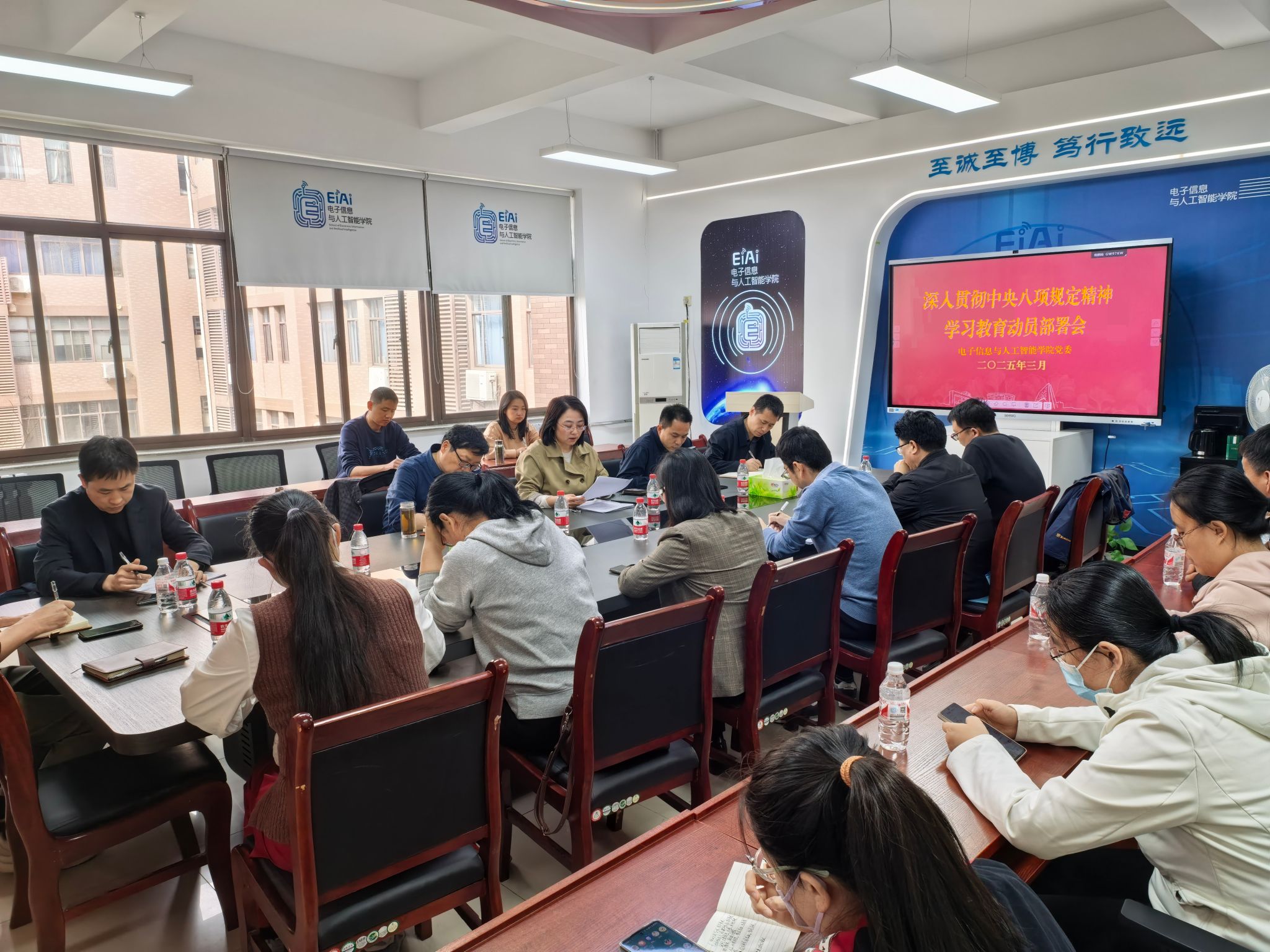 3月24日下午,电智学院召开党委(扩大)会议,对学院开展深入贯彻中央八项规定精神学习教育进行安排部署。学院领导班子成员、党委委员、纪委委员、教工党支部书记、系主任、专业负责人、组织员、办公室全体人员及师生党员代表参加,院党委书记吕文华主持会议。