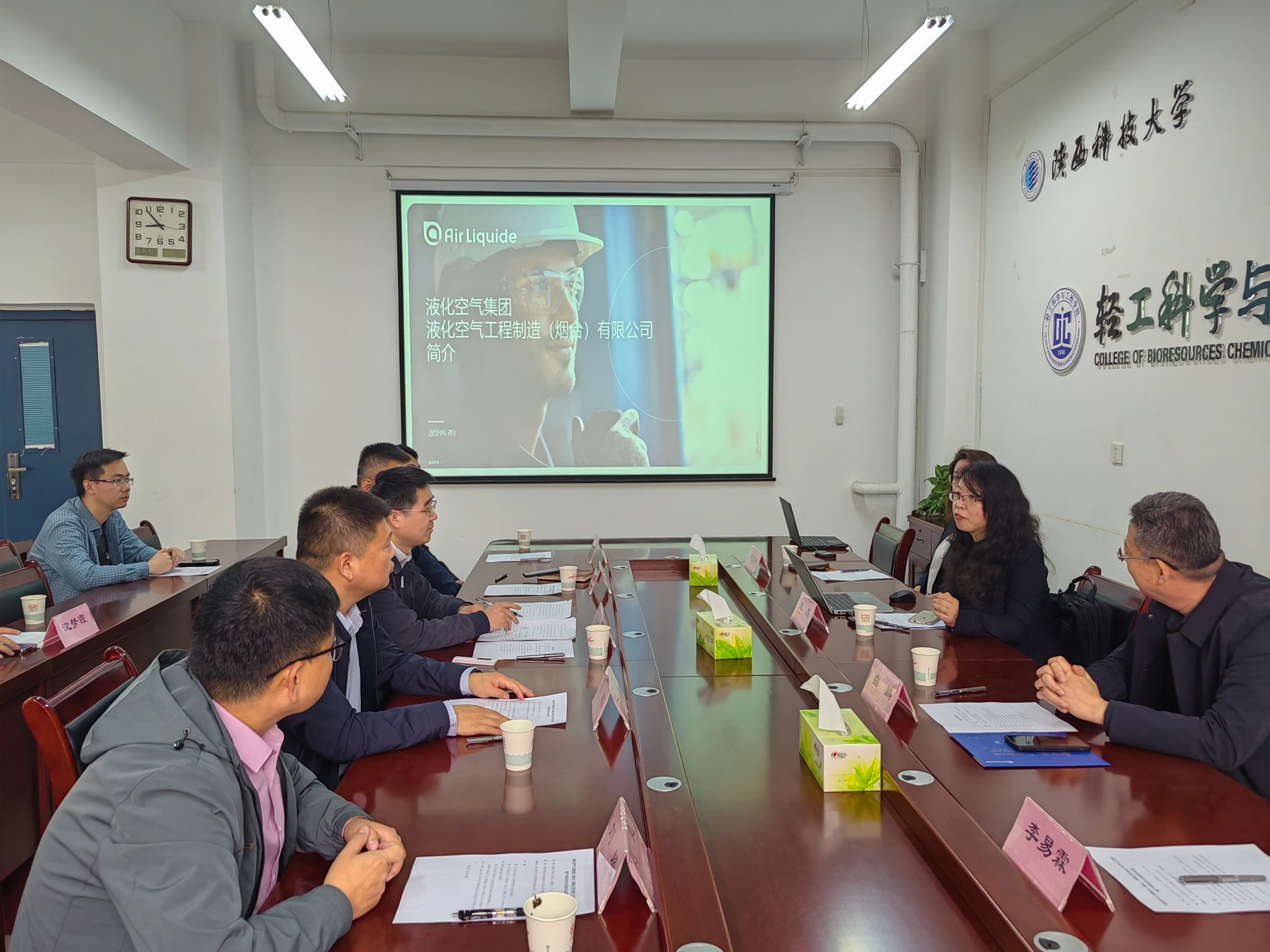 吕斌对曲鹏秘书长及企业一行的到来表示热烈欢迎,并围绕学院发展历程、专业设置、科研成果、人才培养及社会服务等方面介绍了学院发展及取得的成绩。随后,王磊作为企业代表对法国液化空气集团及液化空气工程制造(烟台)有限公司的发展历程、主营业务以及研发工作的现状和成绩进行了介绍。她表示,公司高度重视科技研发、高层次人才培养,希望与我院在人才培养与输送、技术研发、团队建设等方面开展深入合作。