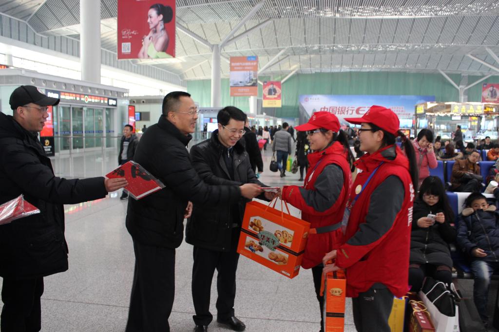 2月3日下午4时,团省委副书记单舒平、校党委副书记温锋一行来到西安铁路局西安北站,慰问在这里参加春运志愿服务的陕科大学子。自全国青年志愿服务春运——“暖冬行动”在西安北站启动起,我校共组织60名在校大学生参加此次春运志愿服务。