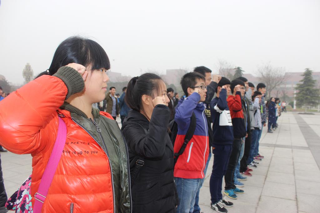 早晨7点,129名学生在福慧图书馆南广场举行了升旗仪式,全体学生面向国旗,歌唱国歌,庄严宣誓——“铭记历史,勿忘国耻;热爱祖国,服务人民;勇于拼搏,积极进取;谨记校训,奋发图强。开拓创新,共创辉煌。”在这坚定的声音中,道出了学生们的爱国主义情怀。