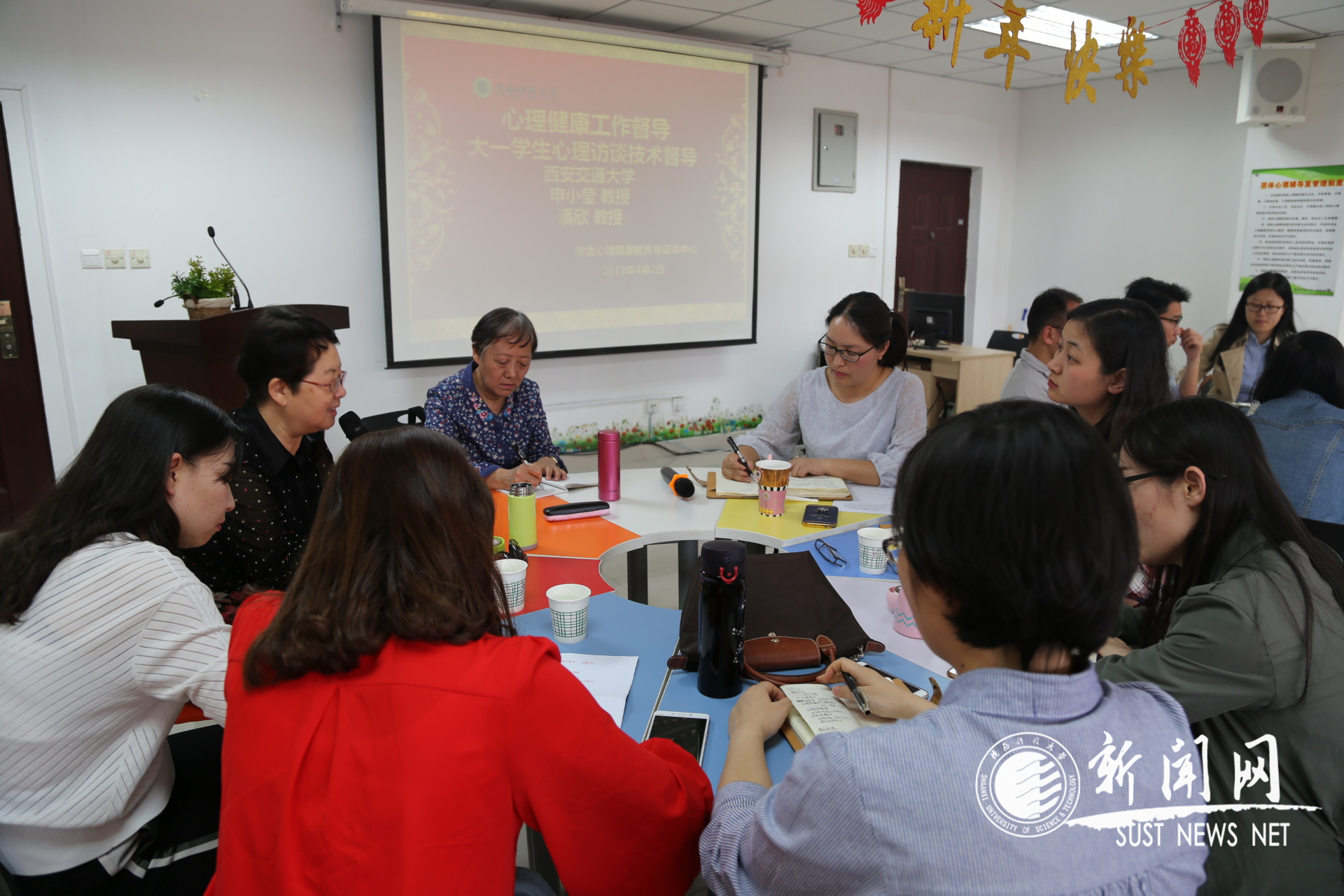 强化跟踪反馈,开展大一学生心理访谈技术督导。为落实2017级新生心理测评约谈反馈及跟踪干预工作,学工部心理中心于4月2日特邀西安交通大学申小莹教授和潘欣教授举行2017级新生心理访谈技术督导。中心全体教师、各院心理专项辅导员及2017级全体辅导员共计30余人参加。