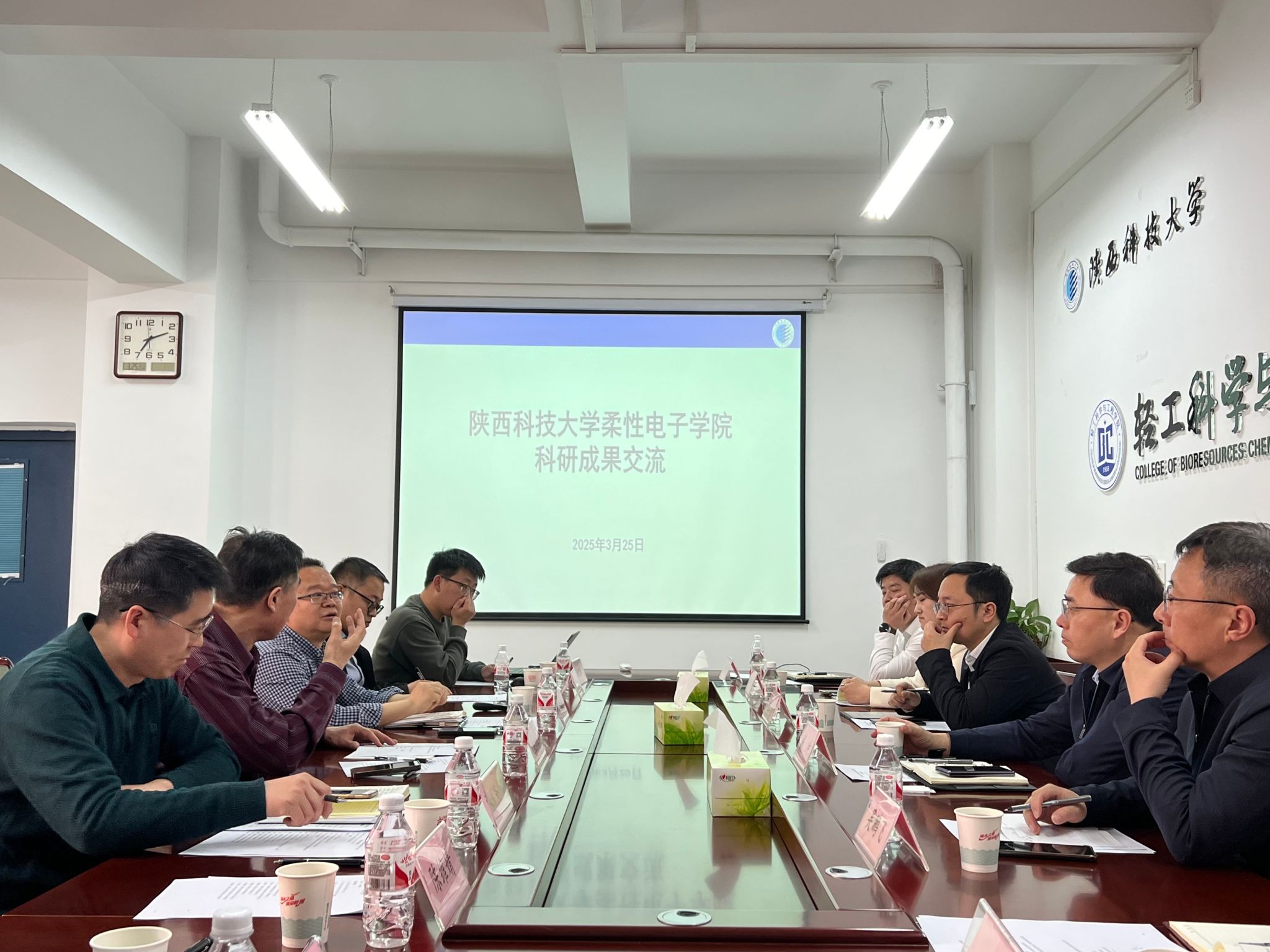 会上,刘国栋系统介绍了学院在纸基电子、鞣制电子、印刷电子等方向取得突破性进展,开发出柔性传感器、智能防伪材料、可穿戴监测贴片等多项具备转化潜力的创新成果。双方就实验室科研成果产业化过程中面临的共性技术攻关、设备升级需求等展开深度探讨。