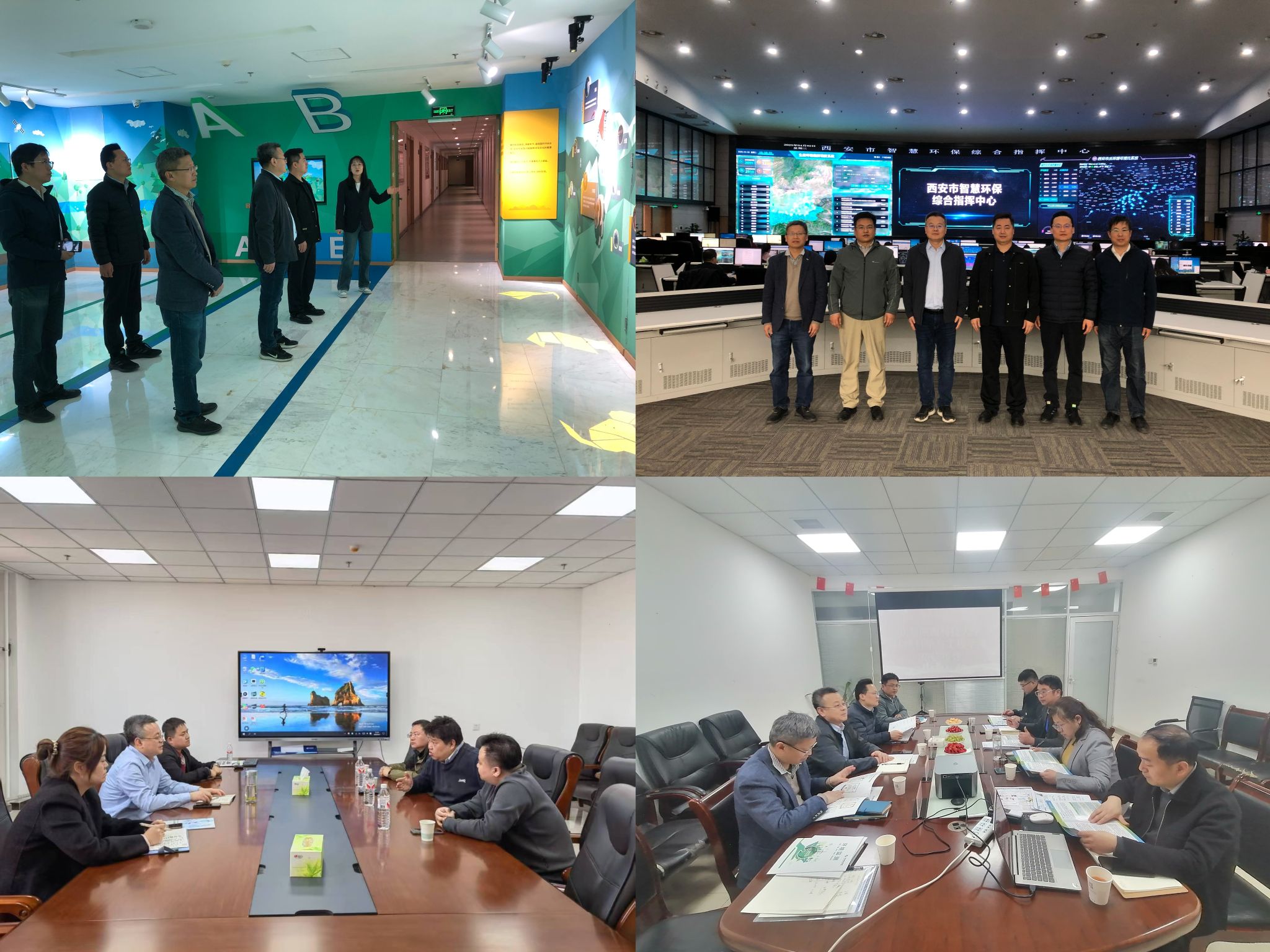 在西安市智慧环保综合指挥中心,郭军康简要介绍了我校办学历史、学科优势及环境学院学科特点、科研团队、科研成果转化等情况,参观了生态环境科普体验活动展厅、综合指挥中心,双方围绕西安市生态环境保护就业务发展研发需求、联合申报项目、学生培养、毕业生实习就业等进行深入交流并达成合作意向。在华邦检测服务有限公司和科仪阳光检测有限公司,郭军康双方结合公司业务发展方向,聚焦国家生态环境保护政策和行业发展走势,就联合研发、项目申报、邀请专业人员来校指导学生实践训练、毕业生就业等领域深度合作开展交流。郭军康一行还就学院学科建设、人才培养、就业服务等方面邀请就业单位提出建设性意见。