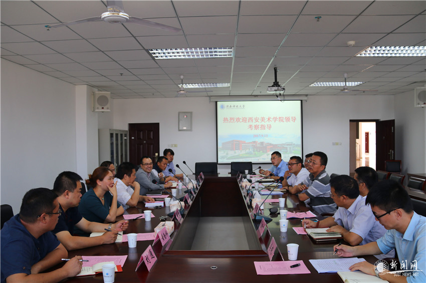 西安美术学院副院长李四军及总务处、招生就业处、学工部、团委等部门主要负责人一行8人9月13日上午来我校考察交流后勤社会化改革、学生管理、招生等工作。校党委副书记温锋、学工部、团委、后勤服务集团、招生办相关负责人参加交流座谈,会议由学工部部长杨建主持。