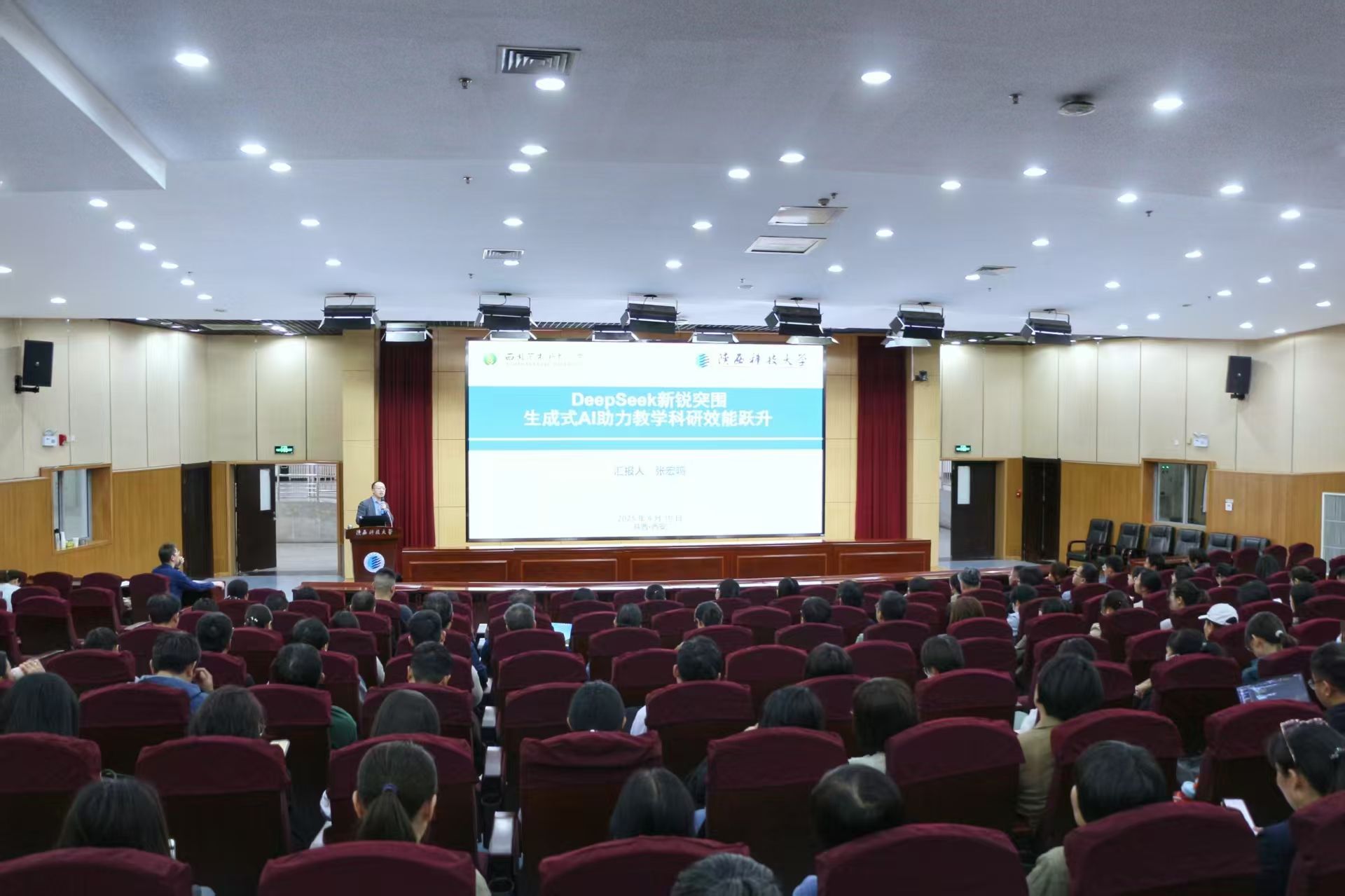 为落实学校七届四次“双代会”精神,扎实推进我校2025年工作要点,积极探索“人工智能+”教育教学新模式,提升我校教师教学科研能力,教师发展中心“人工智能赋能教育教学创新”系列专题培训拉开帷幕。首场报告特邀陕西省教学名师、西北农林科技大学张宏鸣教授作题为《DeepSeek新锐突围,生成式AI助力教学科研效能跃升》的专题报告。报告会由教师发展中心常务副主任徐永建主持,我校300余名教师聆听了此次报告会。