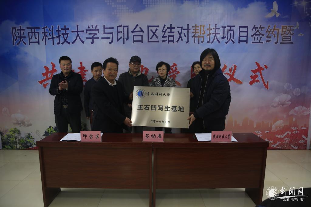 10月17日是第四个国家扶贫日,我校赴铜川市印台区举办结对帮扶项目签约暨共建基地授牌仪式。我校纪委书记王树茂,印台区政府区长李亚莉、副区长黄牛虎,我校设计与艺术学院、职业技术学院、校团委、校党办校办有关负责人、王石凹村第一书记出席仪式。仪式由铜川市印台区教科体局局长张根银主持。