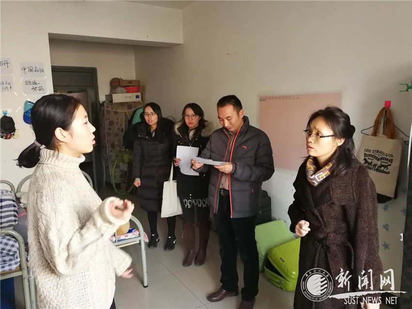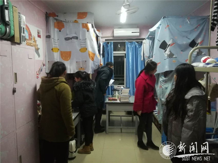 检查整改效果,学工部针对以上突出问题积极跟进整改效果,抓落实、促规范、保平安。公寓办于12月13日、14日晚对学生公寓进行整改效果突击检查,共抽查306间宿舍,重点检查私拉乱接电线、违禁电器及插线板安全隐患,抽查总体效果良好,较整改前有大幅改善,后续将对遗留问题进行再次督查。学生科于12月15日组织了由学工部领导带队、外宿学生辅导员参加的外宿抽查工作小组,以女性、独居学生为重点抽查人群,以未央湖周边、西安工业大学周边村庄、学校周边湖北庄、草滩村等校外区域及青教公寓、沁园小区等校内区域为重点抽查区域,分为五组抽查覆盖10个学院的17名学生外宿住所。针对交通安全、周边安全、用电安全、采暖安全等问题进行仔细摸排,现场指导,立即解决,提高外宿学生的安全意识。