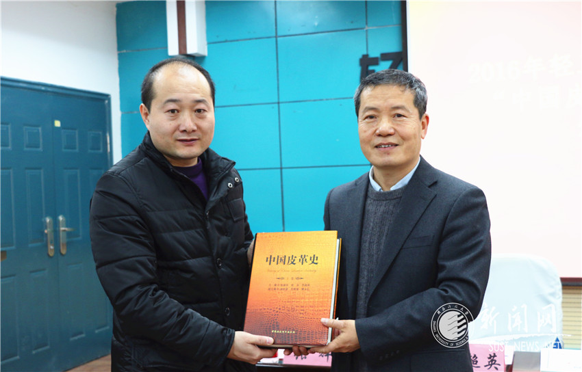 颁奖仪式上,张辉代表学院致辞,向中国皮革协会常年推动行业健康发展,支持高校教育事业的举措表示衷心的感谢。向苏超英一行表示热烈的欢迎。苏超英就“中国皮革协会奖学金”自1995年在我校设置以来的情况做简要说明,鼓励同学热爱所学专业,为中国皮革行业做贡献。随后,苏超英代表中国皮革协会向学院赠送《中国皮革史》。
